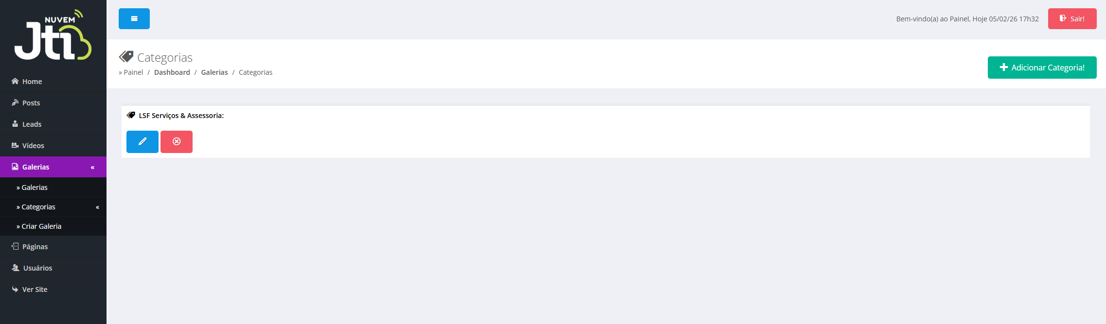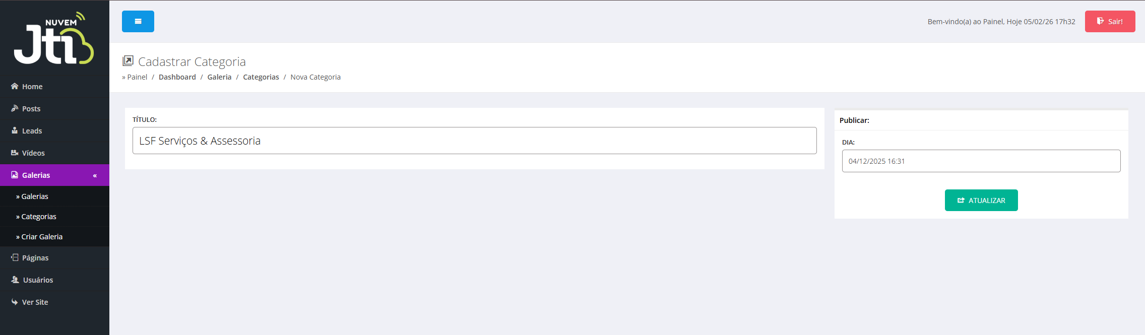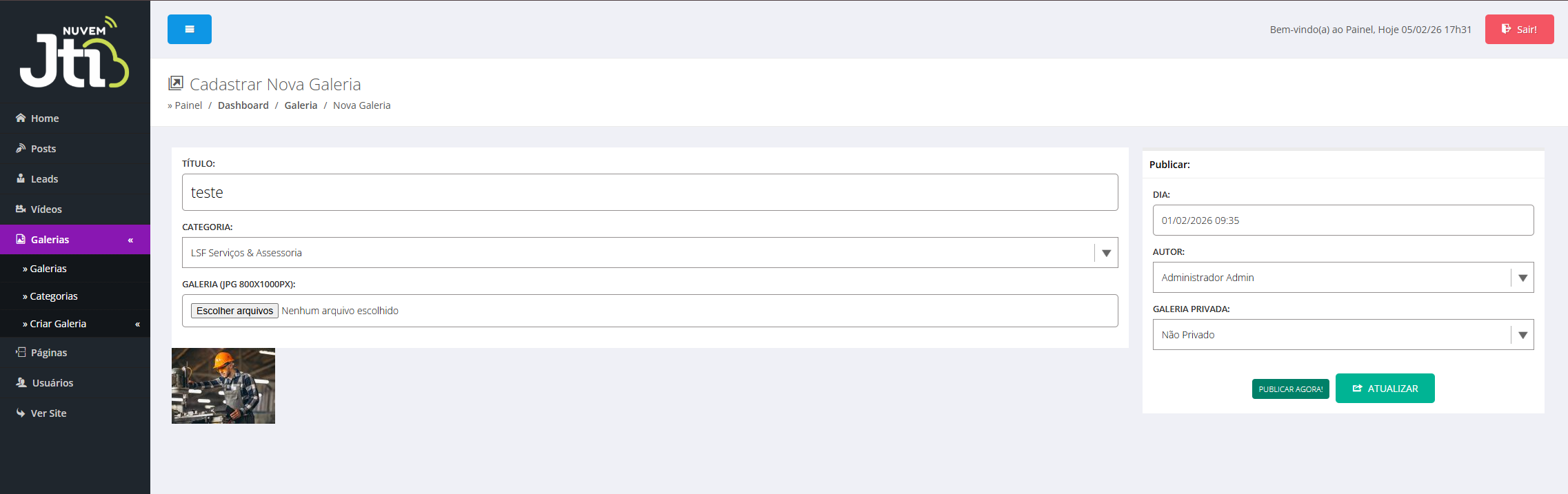 Objetivo: Gerenciar galerias de imagens do site (visualizar, criar, publicar e organizar por categorias).