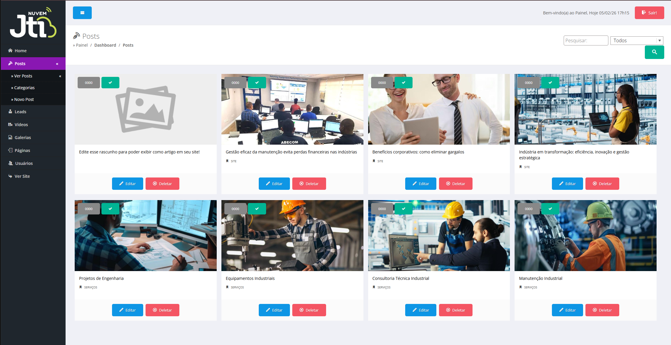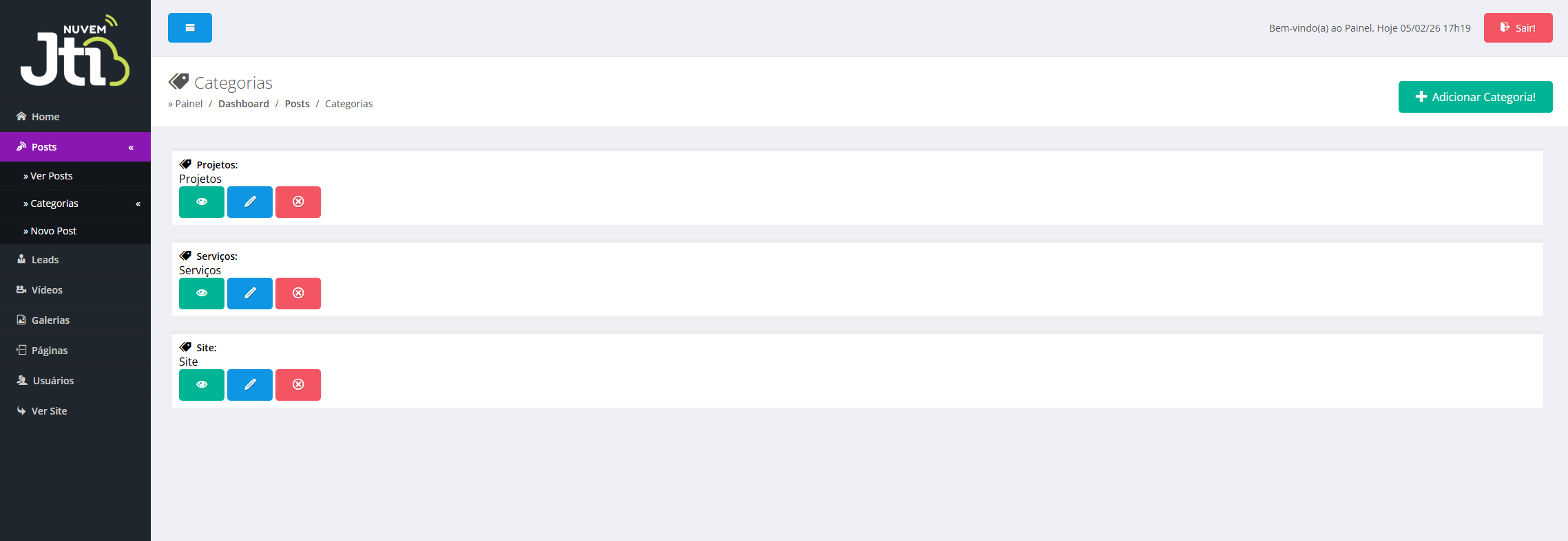 Objetivo: Gerenciar todas as postagens do site (visualizar, criar, editar e organizar por categorias).