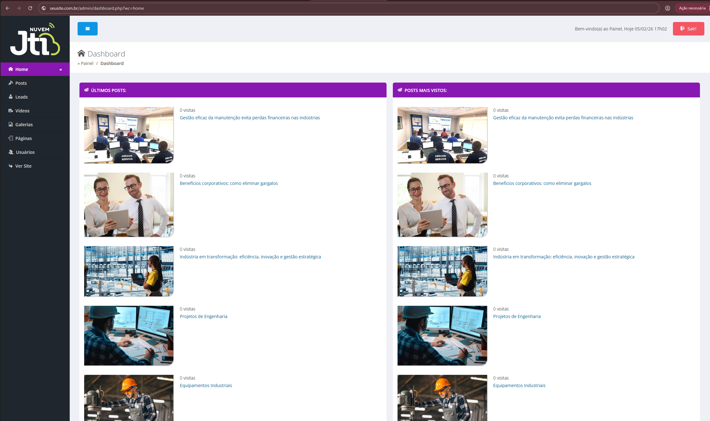 - Após realizar o login, você será direcionado automaticamente para a Dashboard, que é a página inicial do painel administrativo.