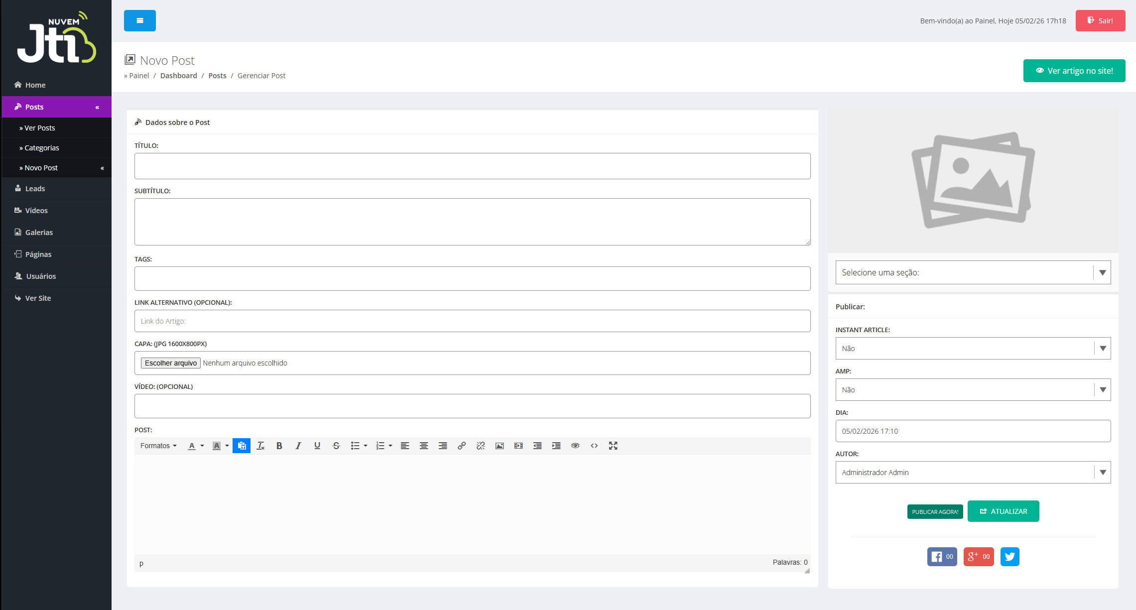 Objetivo: Criar e publicar uma nova notícia ou artigo no site.